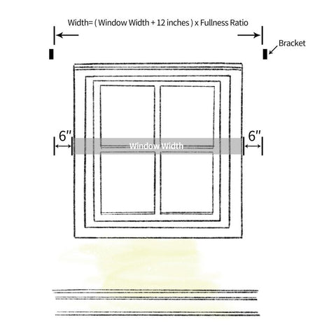 Step 2: Calculate the approximate width of the curtain rod = the width of the window + 6 inches for each side (12 inches in total).